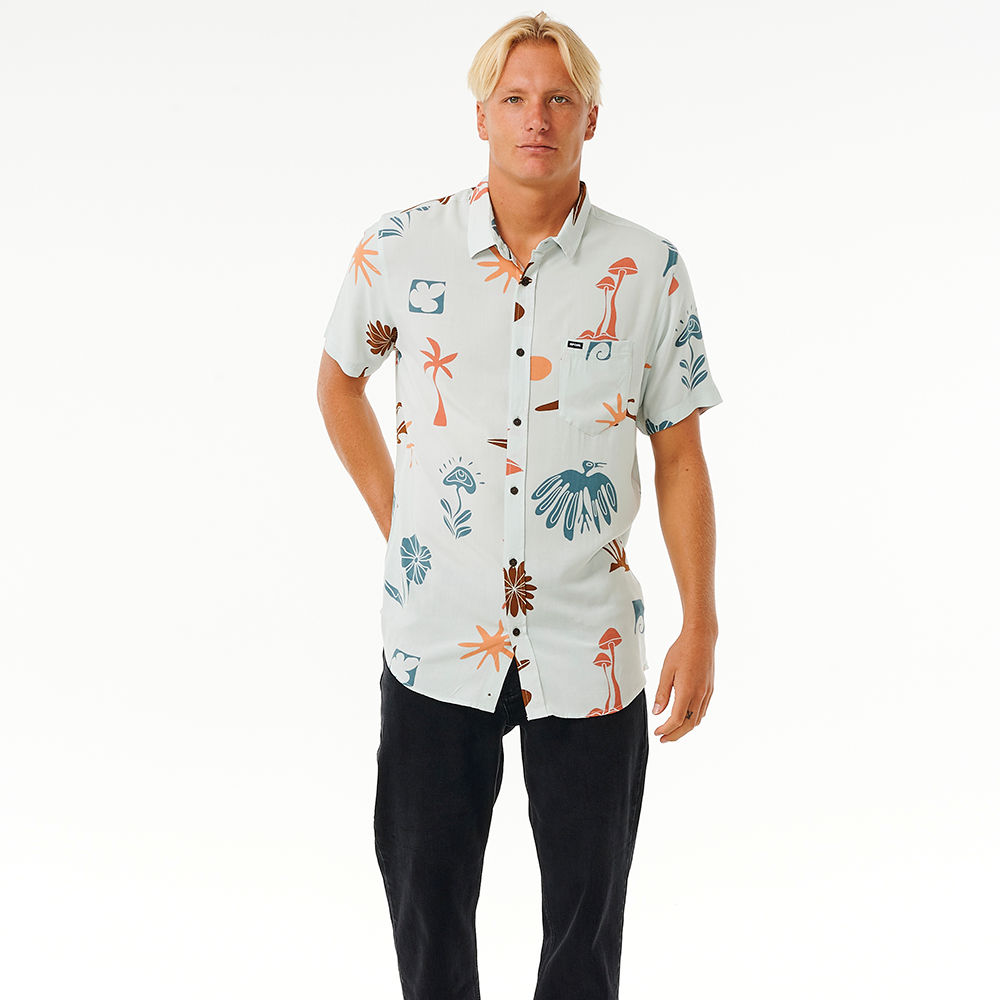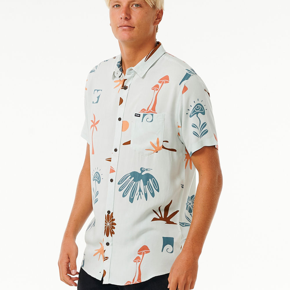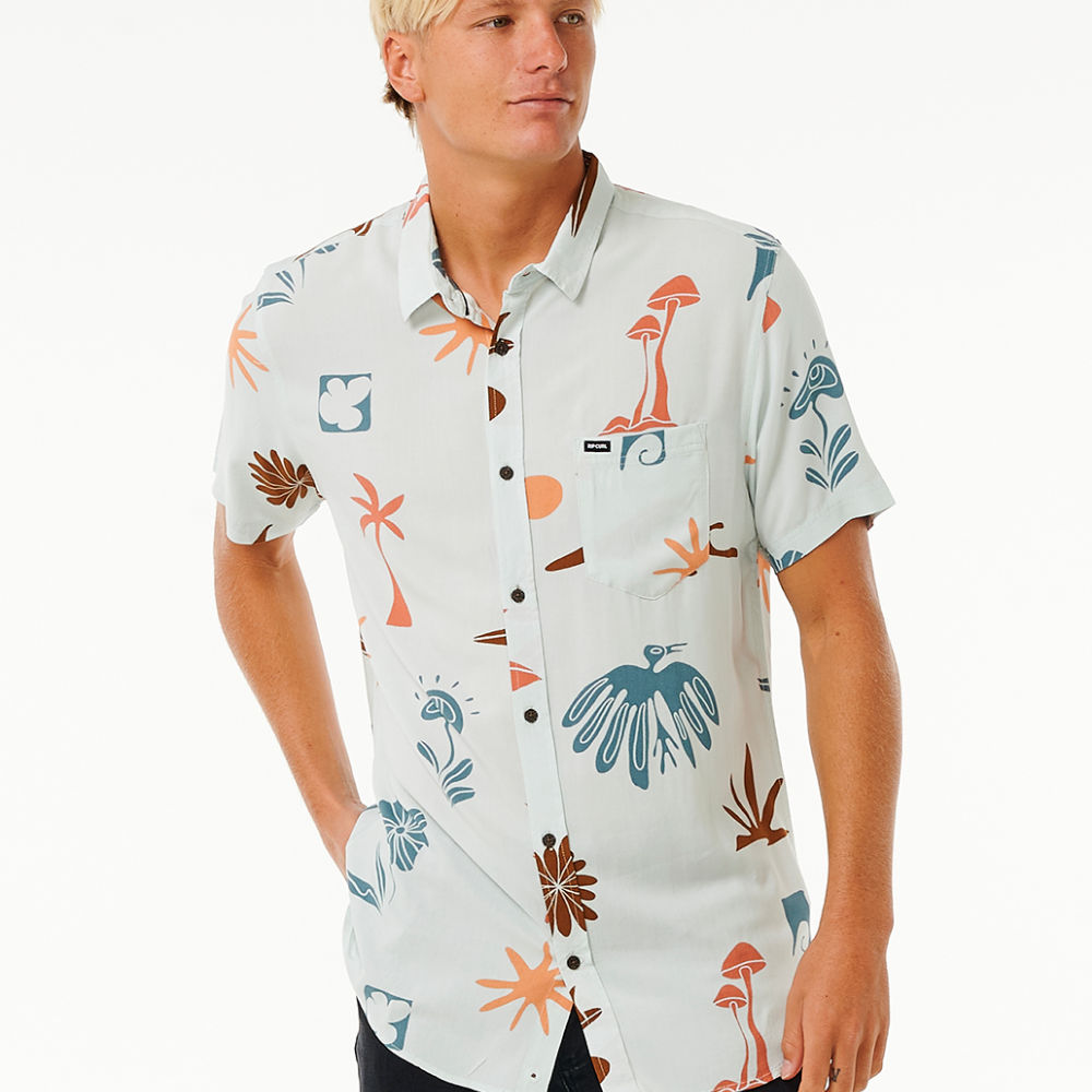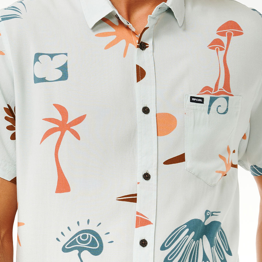 Party in style with the Party Pack Short Sleeve Shirt, showcasing a woven label and chest pocket for a carefree and versatile surf experience.