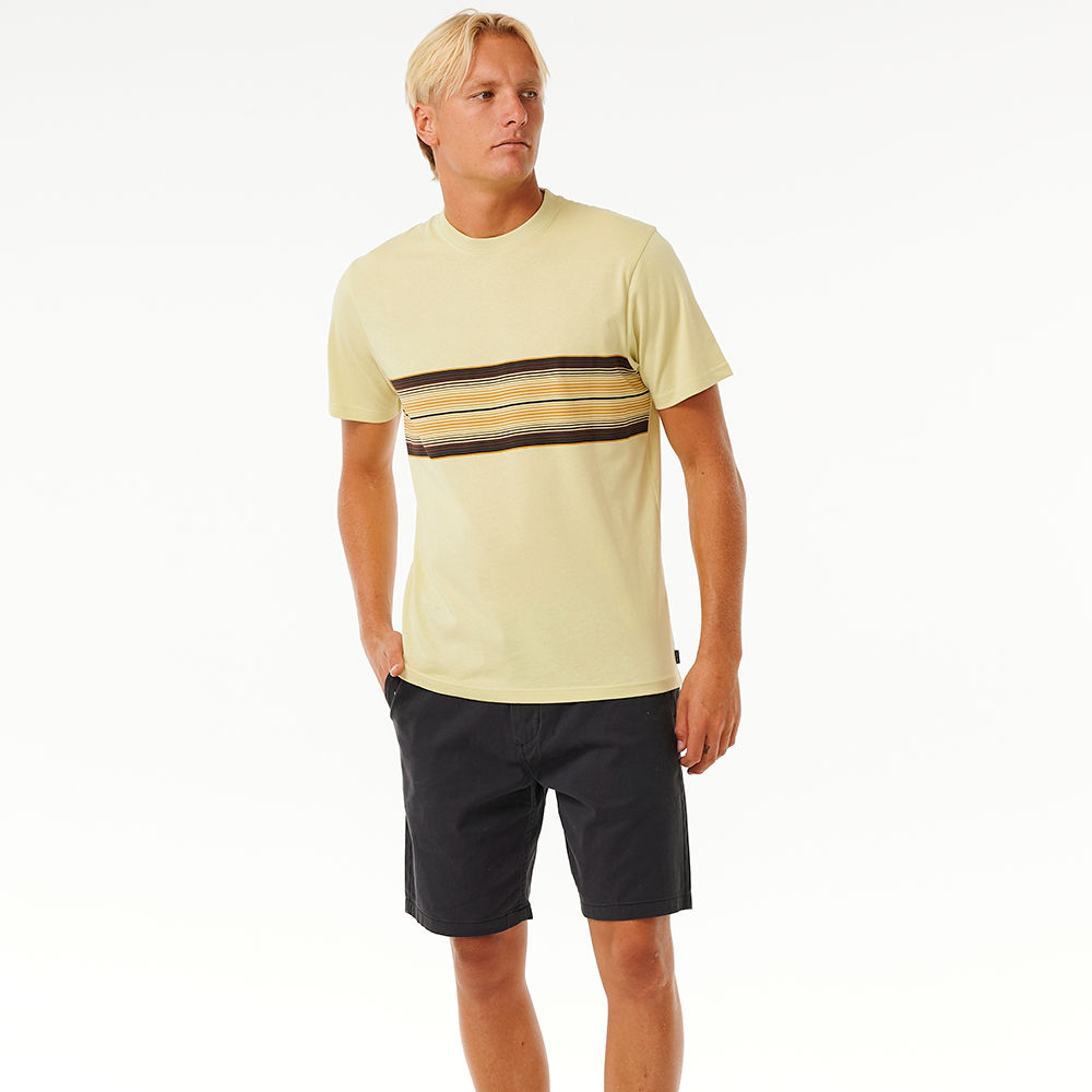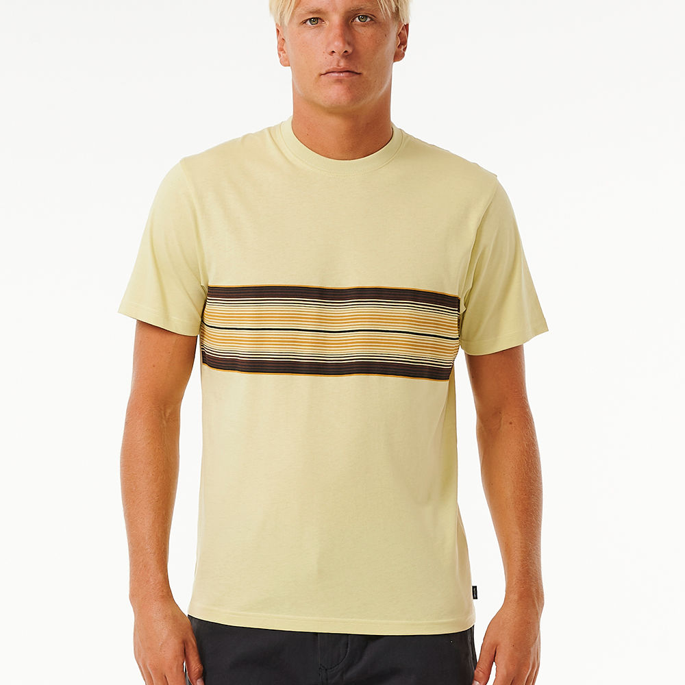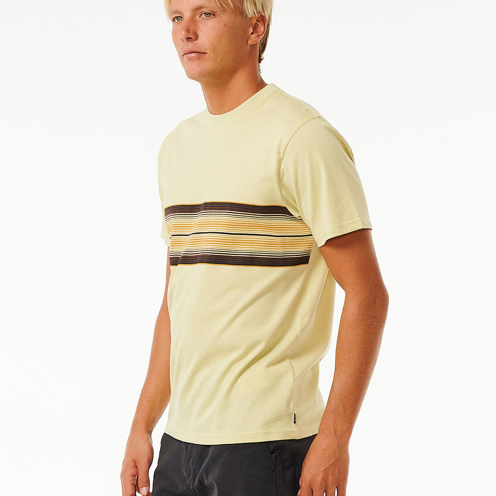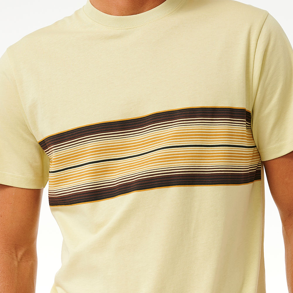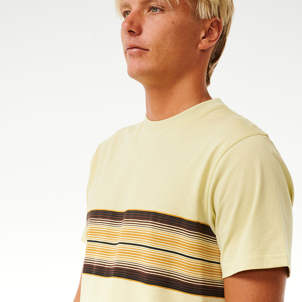 Stride in style with the Surf Revival Stripe Tee, featuring a woven flag label and an engineered print for a trendy surf look.