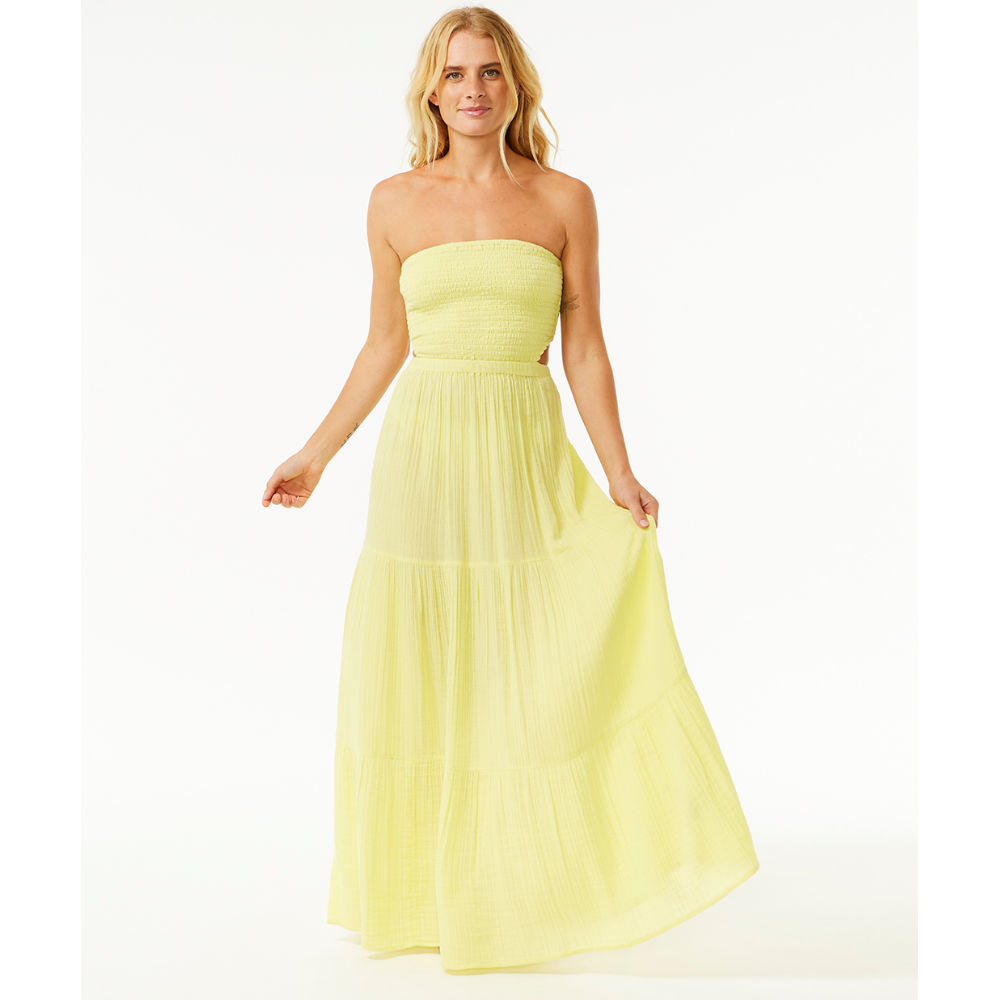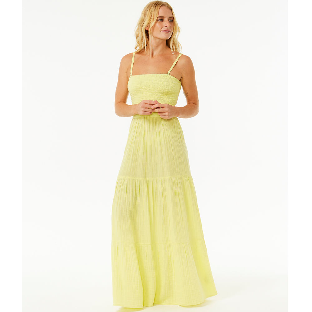 Make A Statement With The Premium Surf Maxi Dress. This Maxi Dress Features Metal Logo Trim, Shirring Detail, Removable Straps, Offering A Stylish And Comfortable Option For Your Summer Events.