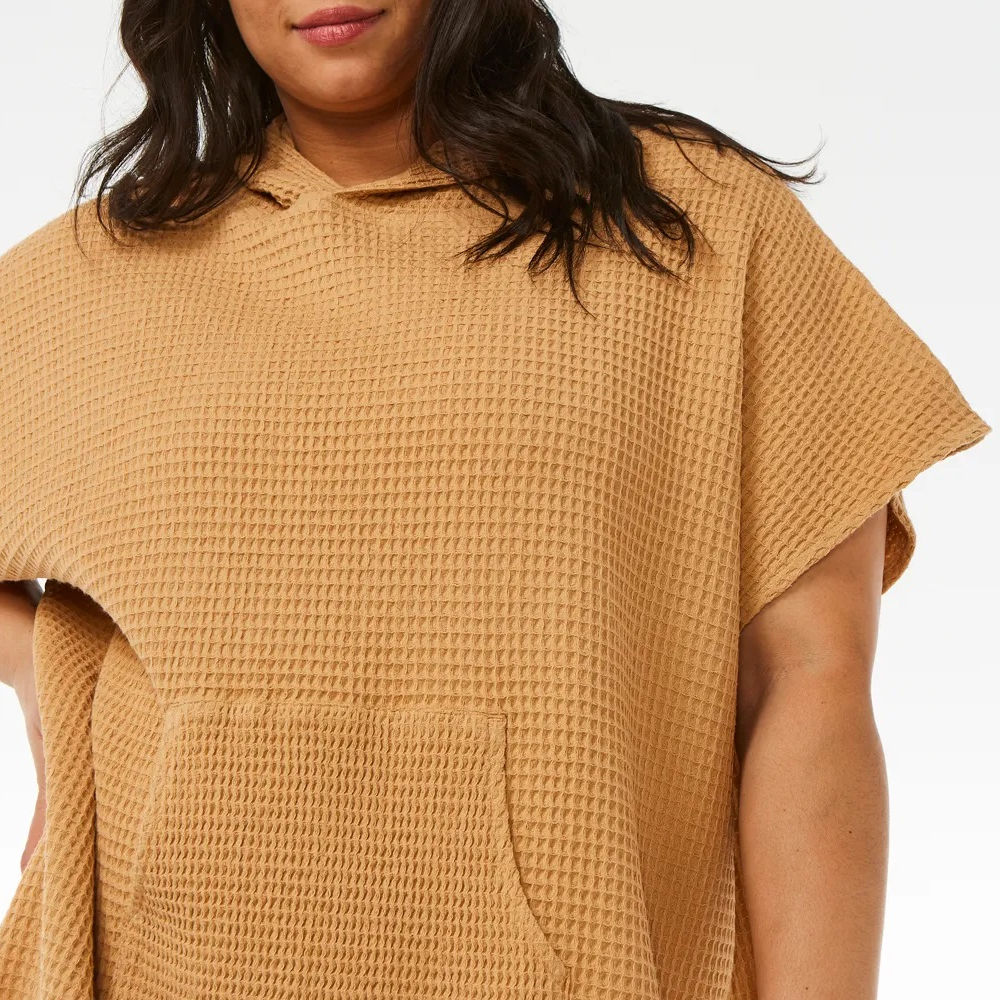 Wrap yourself in comfort and style with our Stonewash Hooded Towel. This standard-fit hooded towel features sleeves for easy movement. The woven construction and vintage look give it a trendy appeal. It comes with a convenient Kanga pocket and a herringbone patch for added functionality and style. The self fringe adds a playful touch, and the length from the top shoulder point ensures ample coverage.