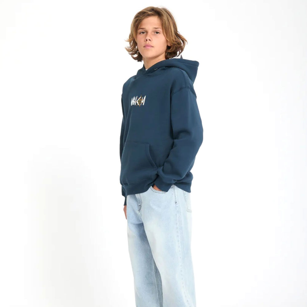 Puff ink graphics pop on this relaxed cotton-blend fleece hoodie built for kids who live loud.