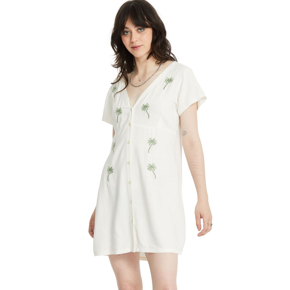 ● Whipstitched palm tree embroideries placed down front chest and waist panels