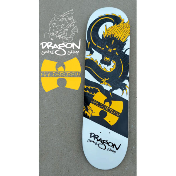 Voor onze nieuwe editie van ons officiële shopdeck zijn we een collab aangegaan met Haldercrew. Zonder Hallaar skatepark zou er waarschijnlijk ook geen sprake zijn van Dragon Skateshop dus op deze manier onze props voor alle lokale skaters van Halder skatepark. Een deel van de opbrengst is dan ook bestemd voor de Haldercrew.
