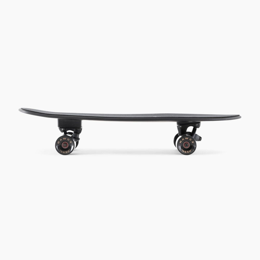 The Pocket Knife is a 29.6″ long Surfskate shape that’s 9.1″ wide and features aggressive taper towards both the nose and tail and classic surfboard styling. 7-ply maple construction keeps the ride nice and responsive while mellow concave and a kicktail will keep your feet locked in for whatever obstacle you want to hit next. The Pocket Knife comes set up with our new Banger Surf Skate trucks combo featuring a Banger RKP front truck for maximum turn and response paired with a Polar Bear 155 rear for a stable, predictable ride. The setup is finished off with a set 63mm 78a Fatty Hawgs with a glossy surface for the smooth, grippy ride you need. The Pocket Knife Black Lines also comes with soft-top griptape for maximum comfort.