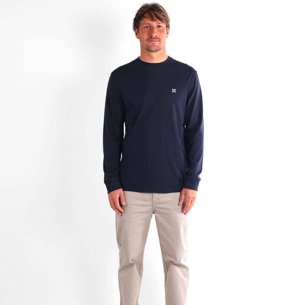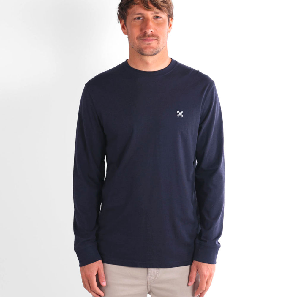 T-shirt met lange mouwen en geborduurd 4Flo-logo op de borst, gemaakt van gekamd katoen en gerecycled polyester, voor een eenvoudige en elegante look.