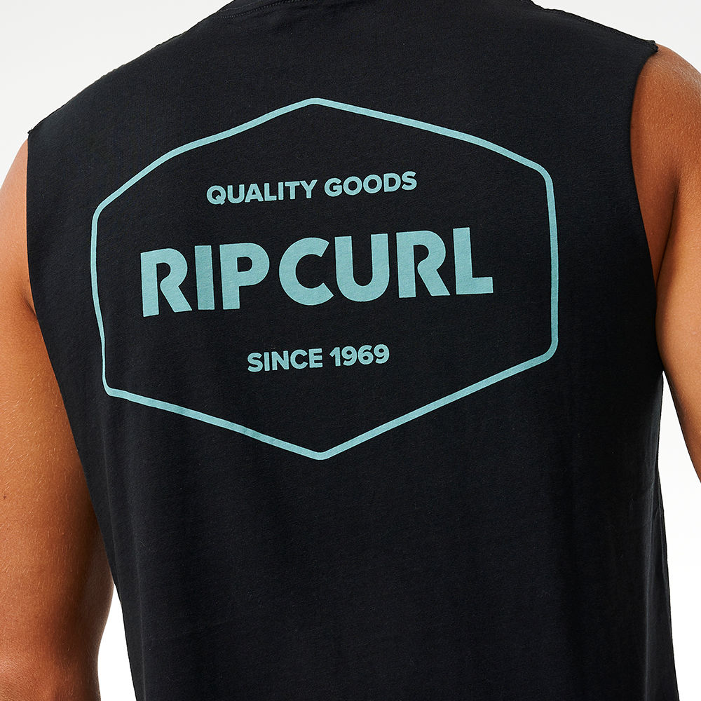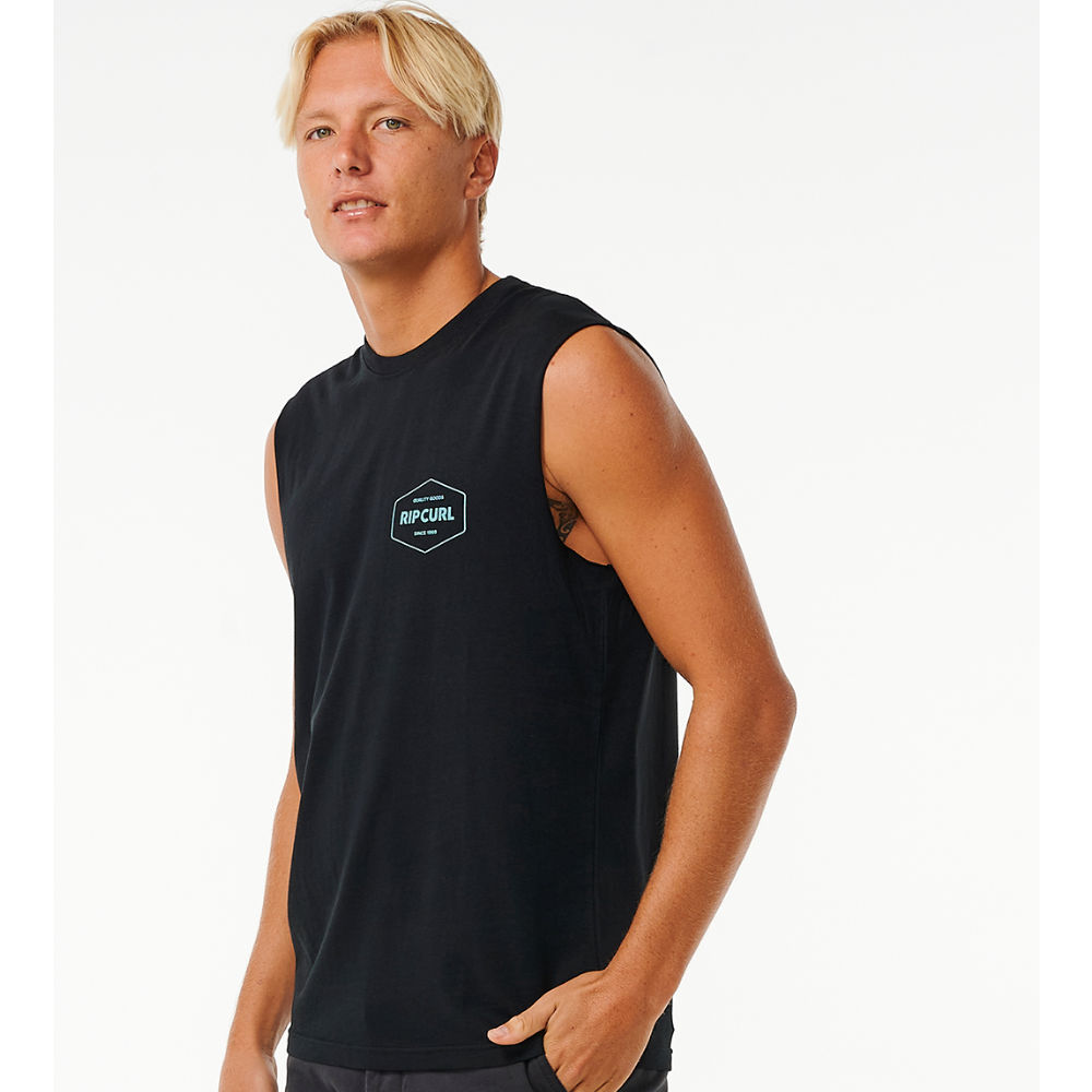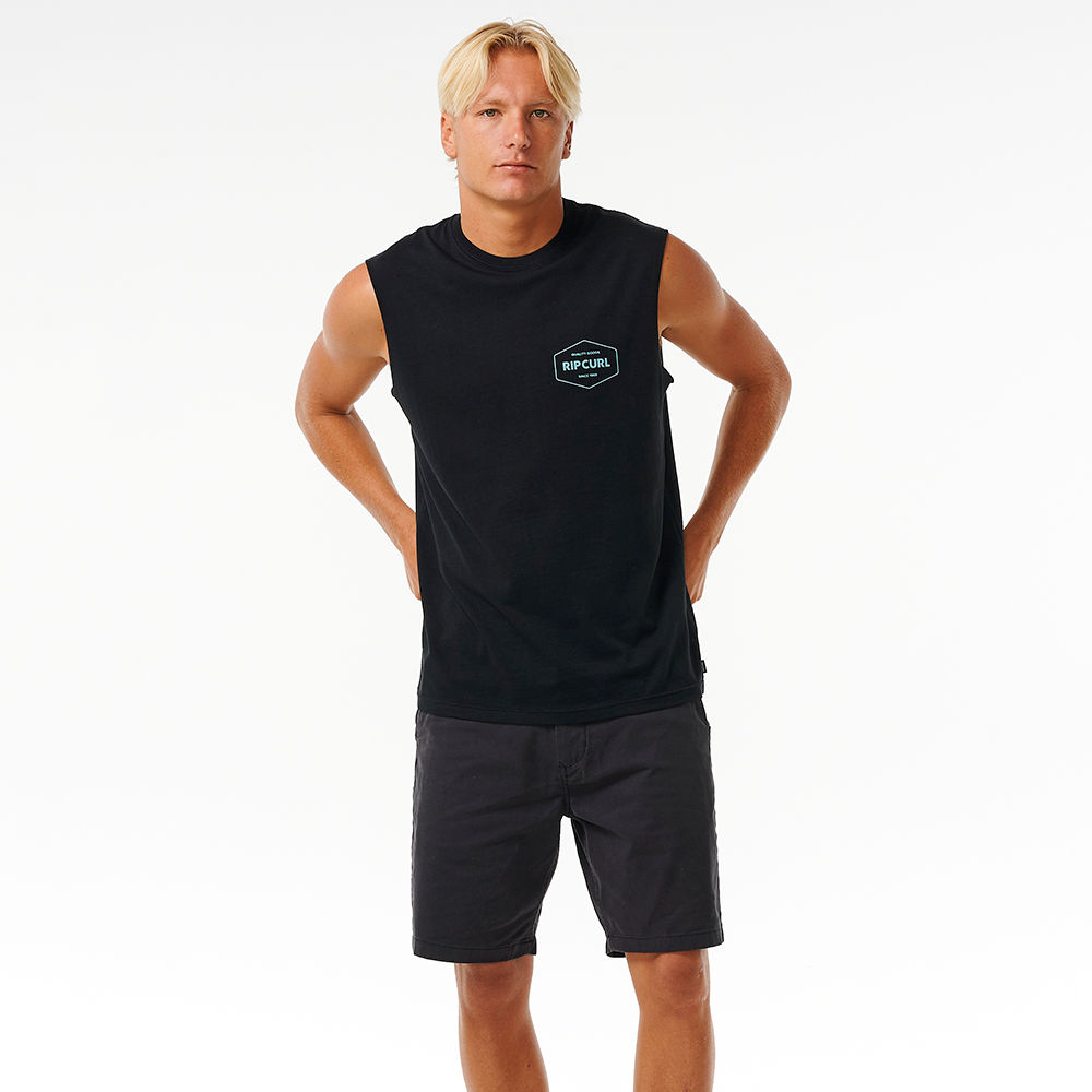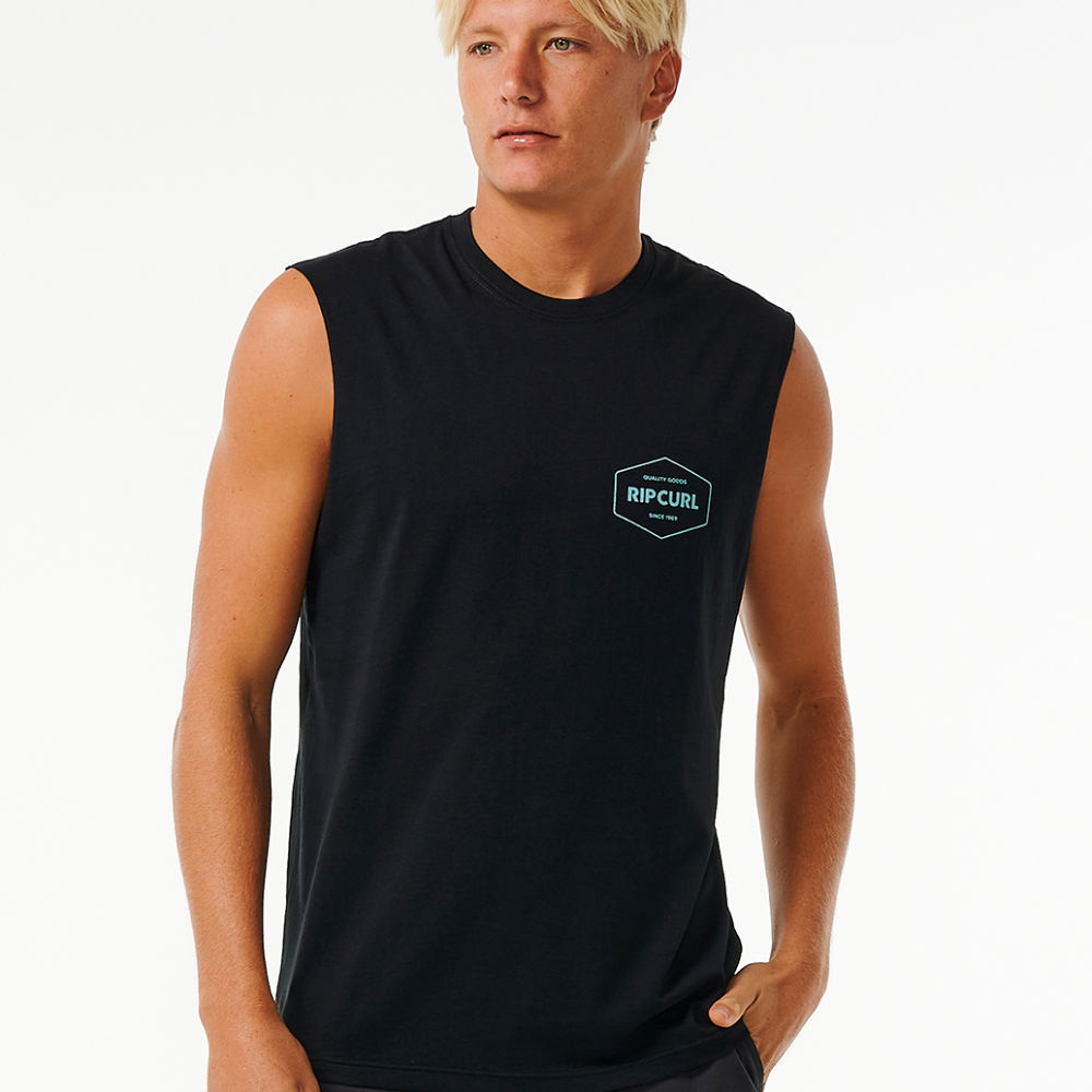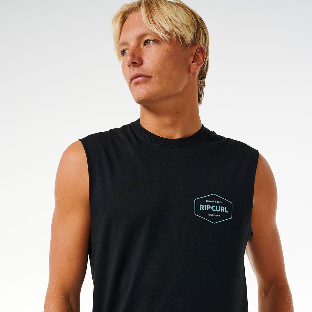 Define your style with the Stapler Muscle Tee, showcasing front and back print and a woven flag label for a trendy and comfortable surf experience.