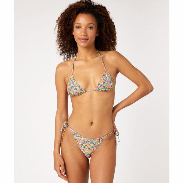 The Rip Curl Afterglow Ditsy bikini has a vintage 70s look. It has a small triangle top and a bikini pant with ties at the side, for girls who like to tan as simply as possible. This super cute swimsuit is available in a multicolour print.