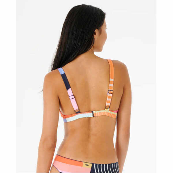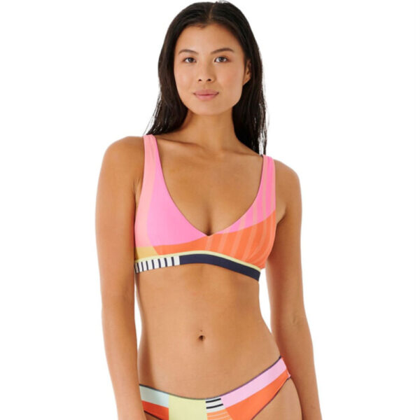 The Daybreak Tri is an epic women’s triangle bikini top made from Extra Life Microfibre Lycra that gives long-lasting comfort, fit and shape with no bagging or sagging. Featuring a colourful asym stripe design, it’s fully adjustable, offering good support and removeable padding.