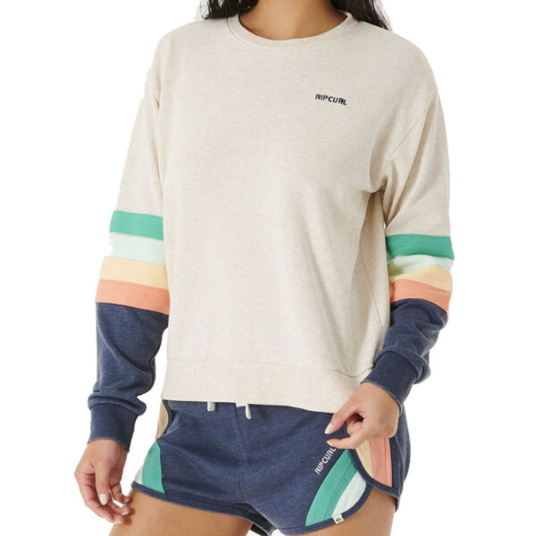 The Surf Break Crew is a rad pullover jumper featuring a timeless stripe design, colour blocking and embroidered logo. Featuring a burnout garment wash finish to give it that vintage appeal, and made in a relaxed fir with looser width and casual vibe.