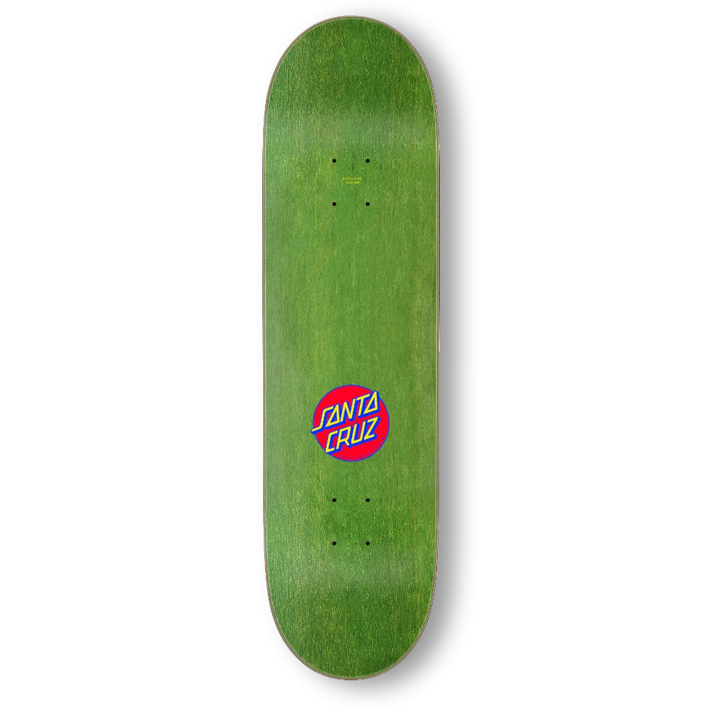 Het Santa Cruz Dot Guy deck is voorzien van het iconische Dot Guy artwork op een bruin gebeitste onderzijde en een groen gebeitste bovenkant. Dit klassieke Santa Cruz design combineert opvallende graphics met een veelzijdige shape voor street en park.