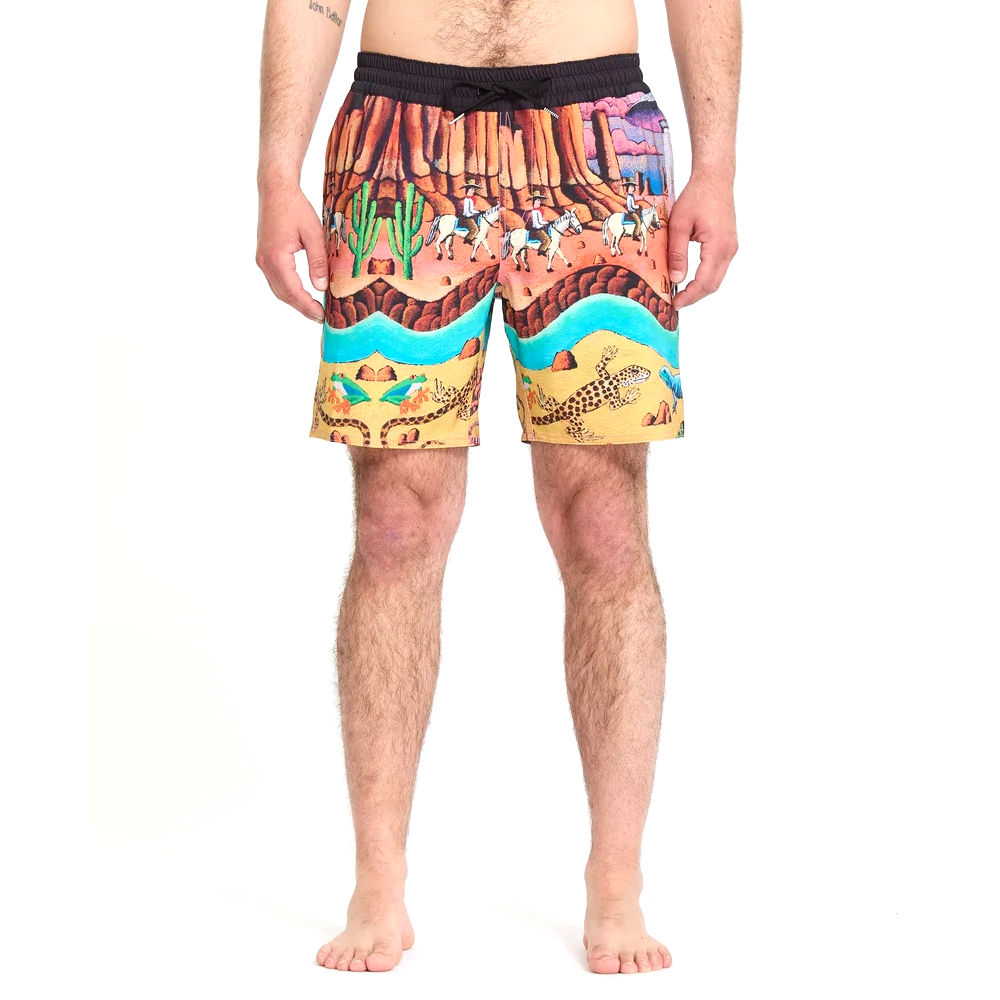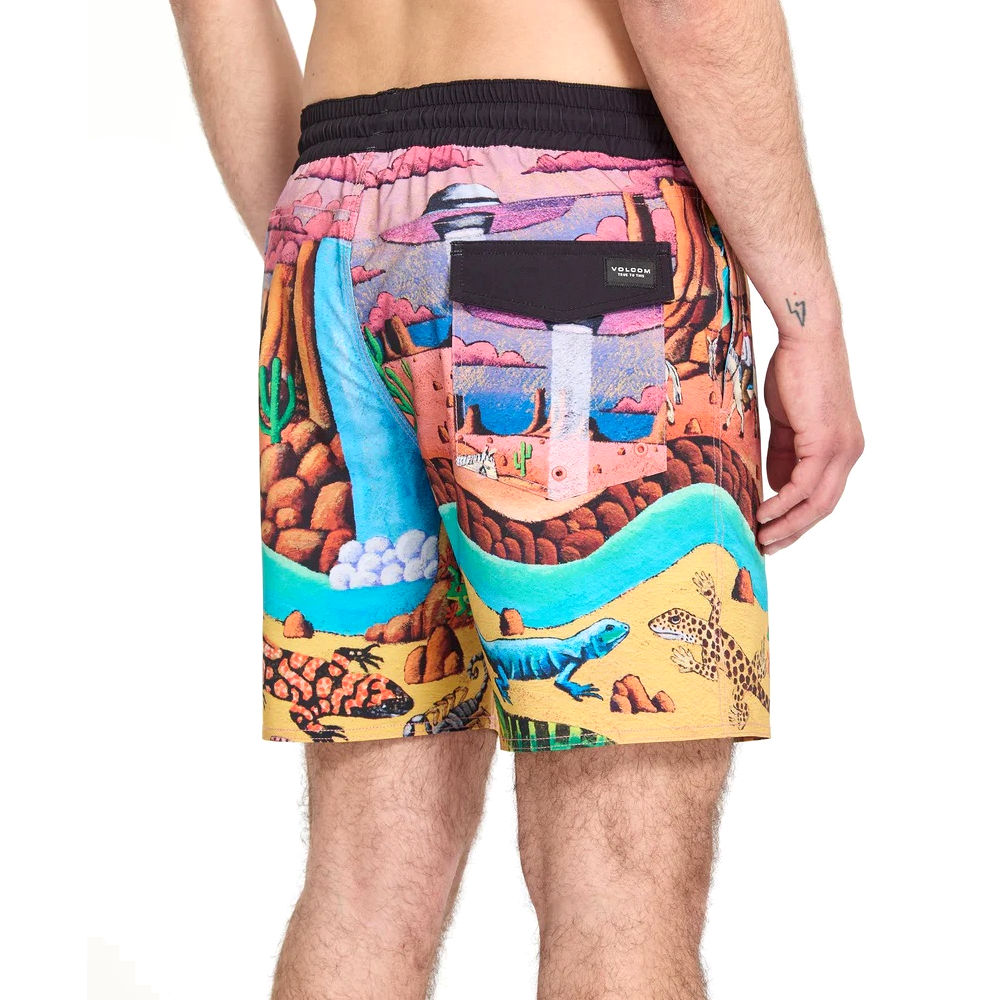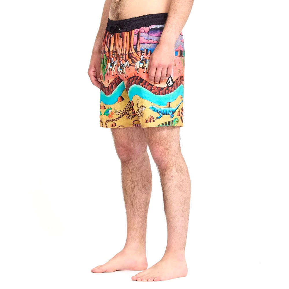 Ga voor maximale flexibiliteit met deze 17″ boardshorts van polyester/elastaan, voorzien van zijzakken en kenmerkende Volcom-details.