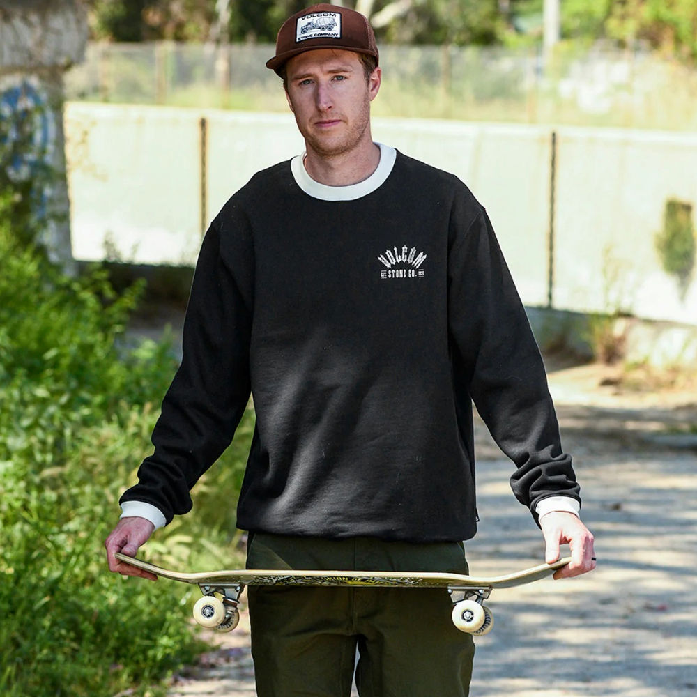 The Skate Vitals Grant Taylor Crew Sweatshirt was designed in collaboration with Volcom Team Rider, Grant Taylor. This classic fit crew sweatshirt combines Grant’s style with solid Volcom construction. Made from heavy weight 80/20 cotton/poly 385 gsm heavy fleece, it features a front and back screenprint, with the back ’91 print celebrating the both the year Grant was born and inception of the Volcom brand. The contrast ribbing and Grant Taylor’s signature printed inside the neck make this sweatshirt a neccessary pick up for fans of Volcom and Grant Taylor.